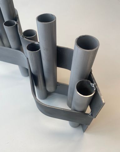 For my fourth project in my Models and Prototypes class, we were tasked with designing and fabricating a product made entirely out of metal. For this assignment, my group and I created a metal centerpiece that functions both as a flower vase and as a candle holder.